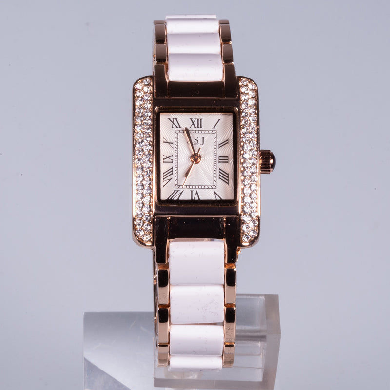 Hodinky z Ušlechtilé Oceli s Bílým Ciferníkem, Bílým Keraminckým Řemínkem a Zirkonem