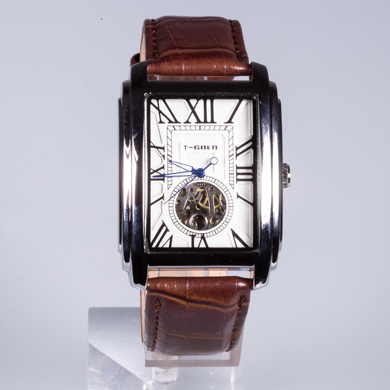Automatické Hodinky z Ušlechtilé Oceli s Hnědým Koženým Řemínkem