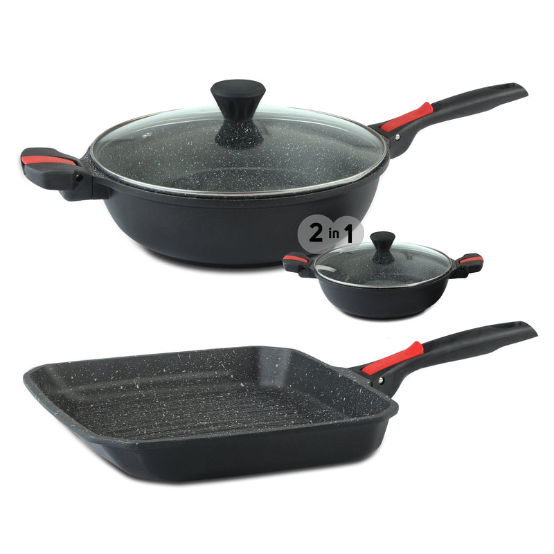 Berlinger Haus 3dílná sada pánví s mramorovým povlakem, odnímatelnou rukojetí a víkem