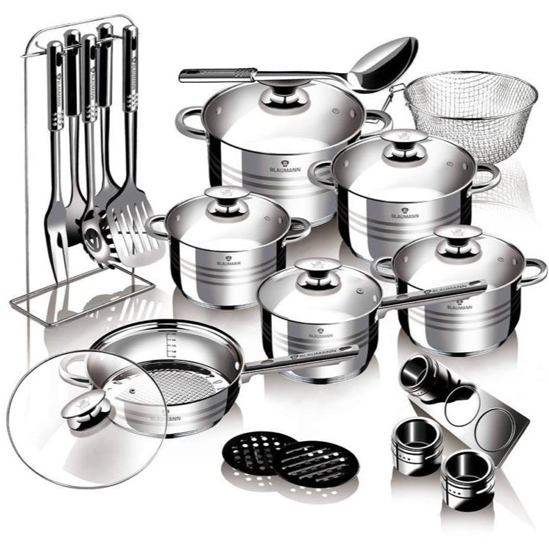 Blaumann 27dílná sada nádob z nerezové oceli se saténovým dekorativním proužkem, Gourmet Line