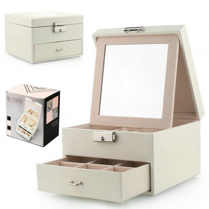 Elegantní Šperkovnice a Organizér se Zrcadlem, Bílá