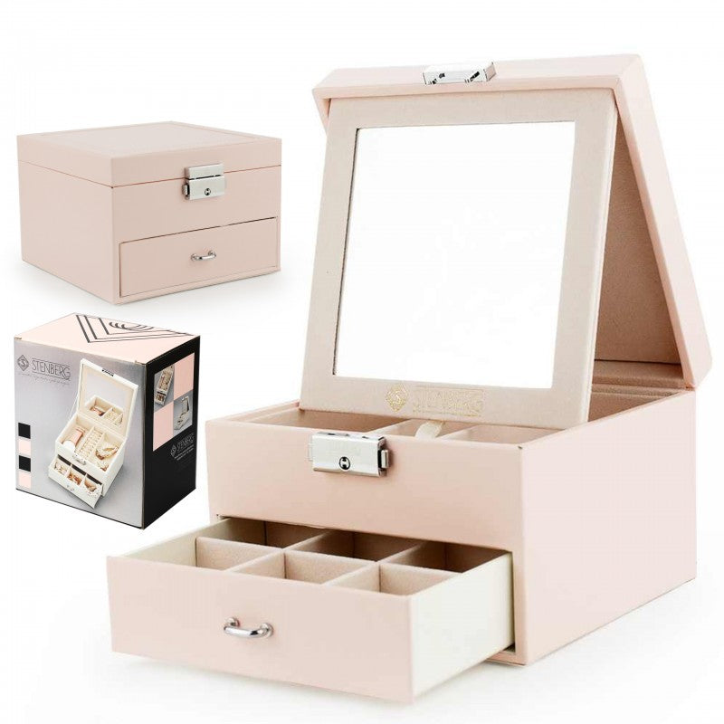 Elegantní Šperkovnice a Organizér se Zrcadlem, Růžová