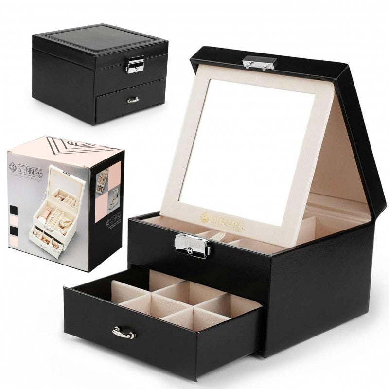Elegantní Šperkovnice a Organizér se Zrcadlem, Černá