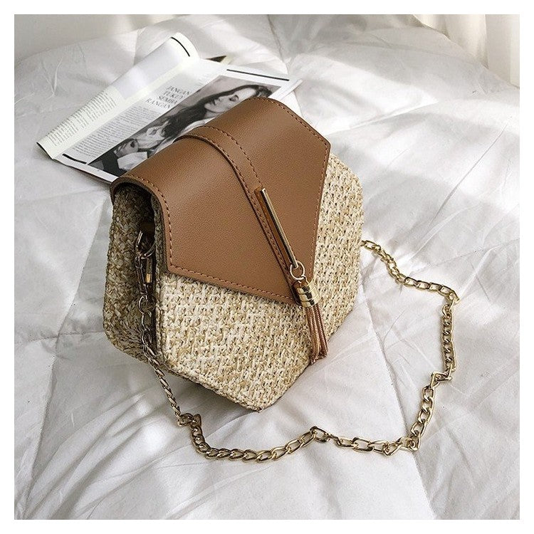 Krásná Pletená Taška s řetězem zlaté barvy, Hnědá