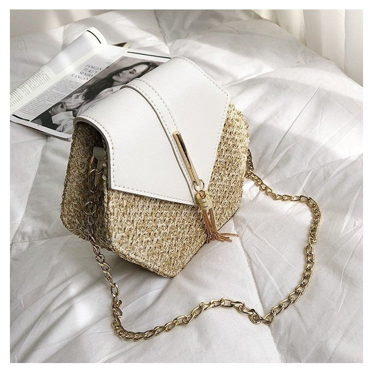 Krásná Pletená Taška s řetězem zlaté barvy, Bílá