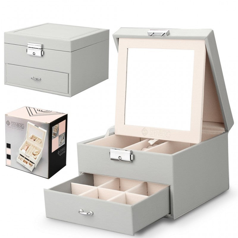 Elegantní Šperkovnice a Organizér se Zrcadlem, Šedá