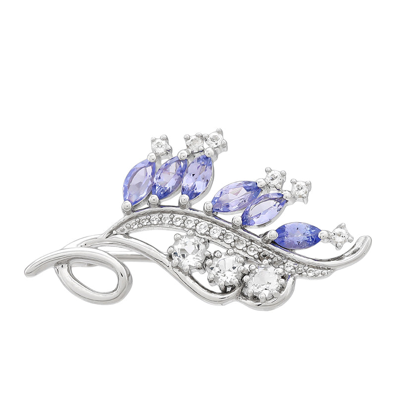 Stříbrný Brož s AAA Tanzanitem a Bílým Topazem