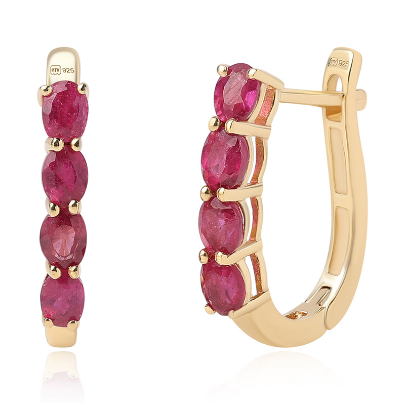 Pozlacené Stříbrné Náušnice s Mozambickým Rubínem
