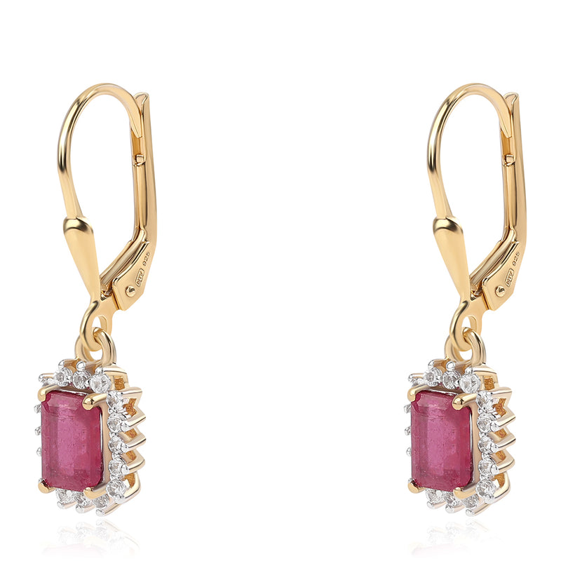 Pozlacené Stříbrné Náušnice s Mozambickým Rubínem a Bílým Topazem