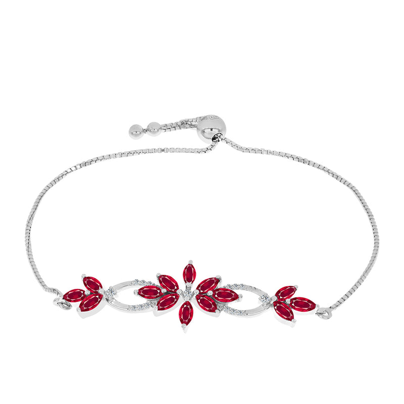 Stříbrný Náramek s Madagaskarským Rubínem a Bílým Topazem