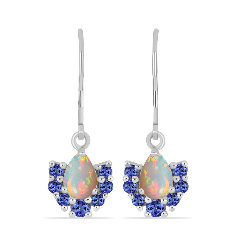 Stříbrné Náušnice s Tanzanitem a Etiopským Opálem z Lega Dembi
