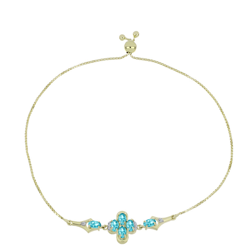 Pozlacený Stříbrný Náramek s Paraiba Křemenem a Bílým Topazem