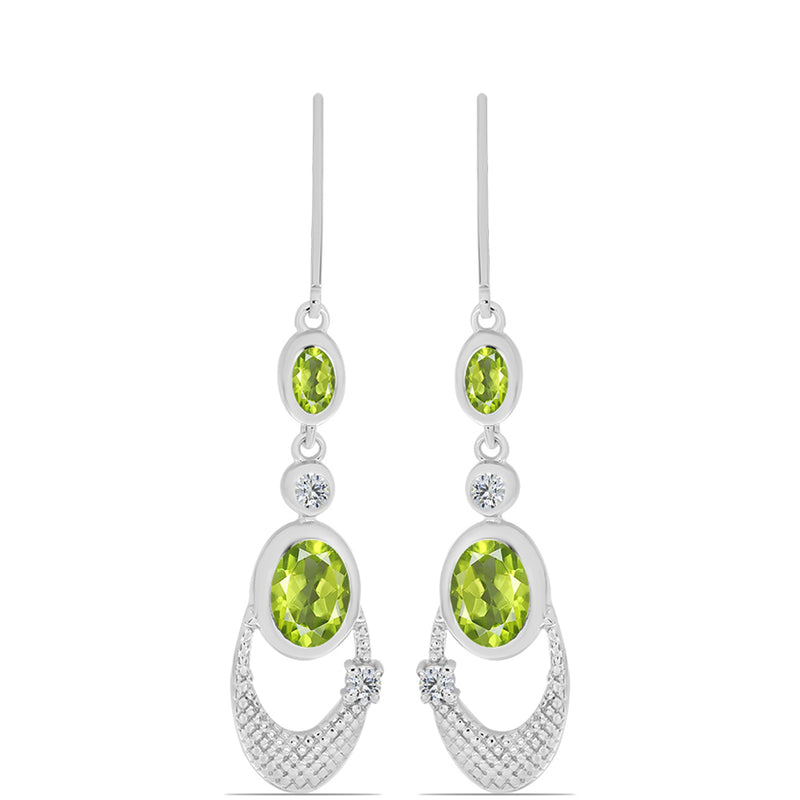 Stříbrné Náušnice s Čchang-pajským Peridotem a Bílým Zirkonem