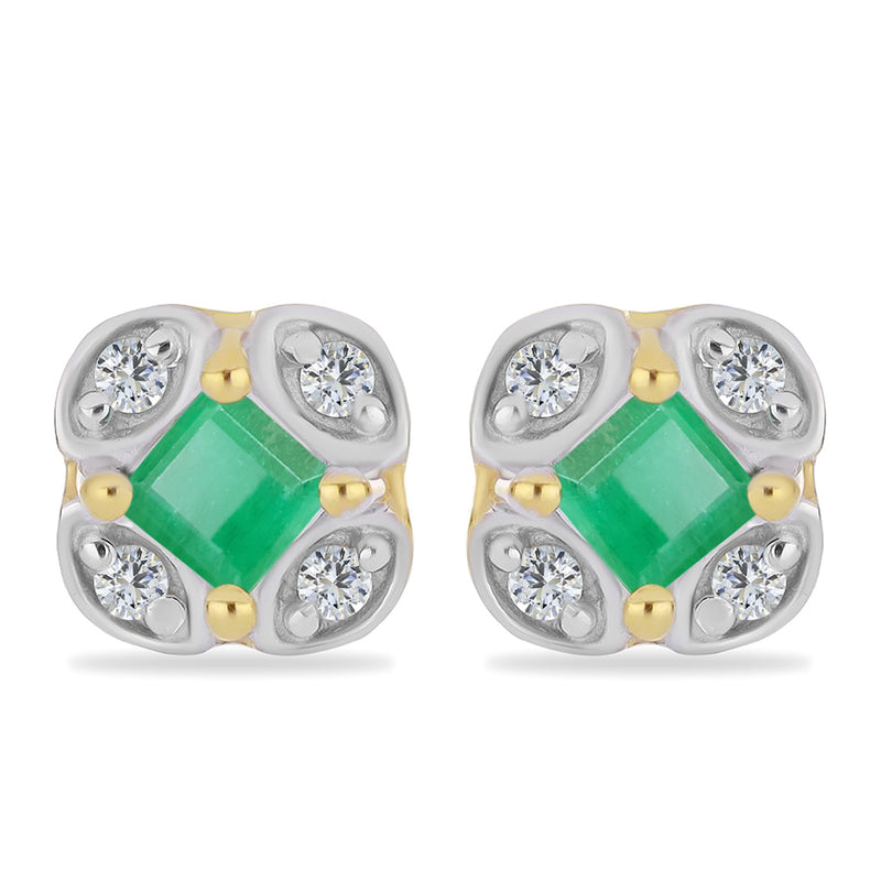 Pozlacené Stříbrné Náušnice s Brazilským Smaragdem a Bílým Zirkonem