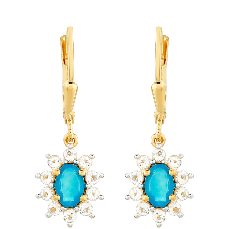 Pozlacené Stříbrné Náušnice s etiopským Paraiba modrým opálem a Bílým Topazem