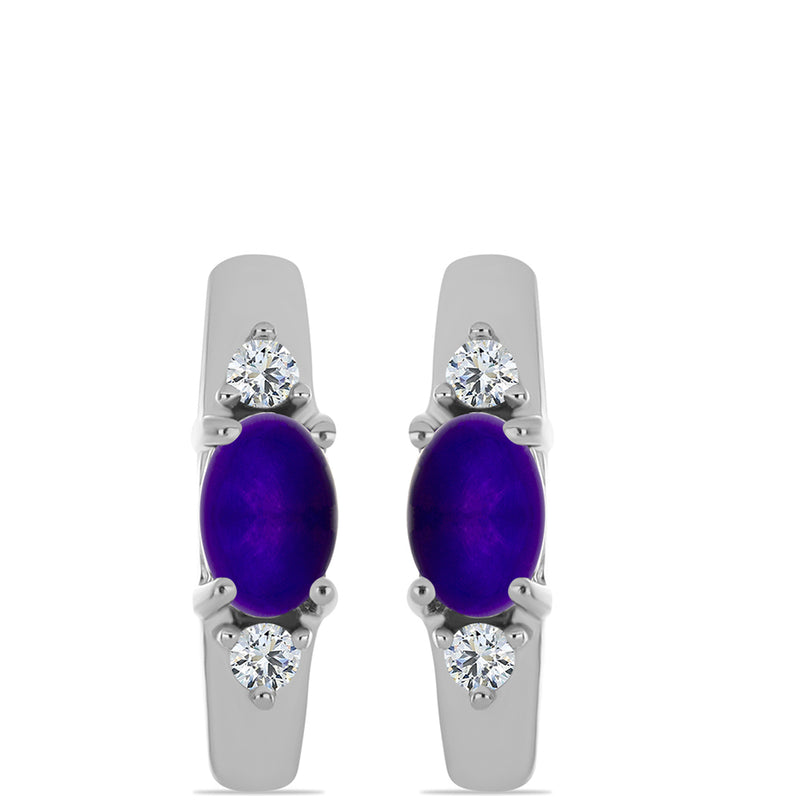 Stříbrné Náušnice s "Císařský Fialový" Moissanitem a Bílým Topazem