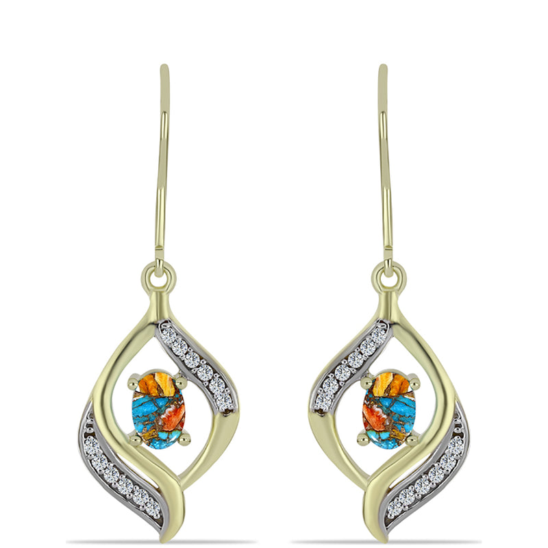 Pozlacené Stříbrné Náušnice s Ústřicovým Tyrkysem a Bílým Topazem