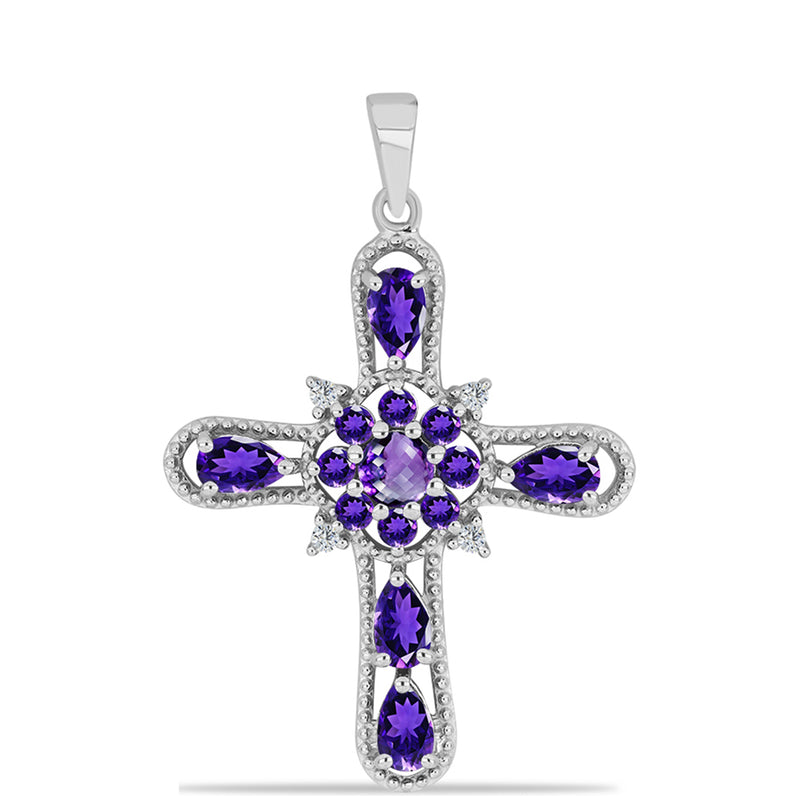 Kříž Stříbrný Přívěsek s Marockým Ametystem a Bílým Topazem