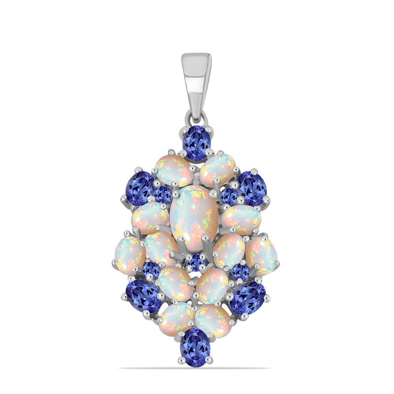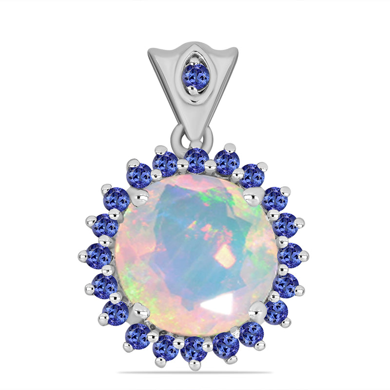 Stříbrný Přívěsek s Tanzanitem a Etiopským Opálem z Lega Dembi