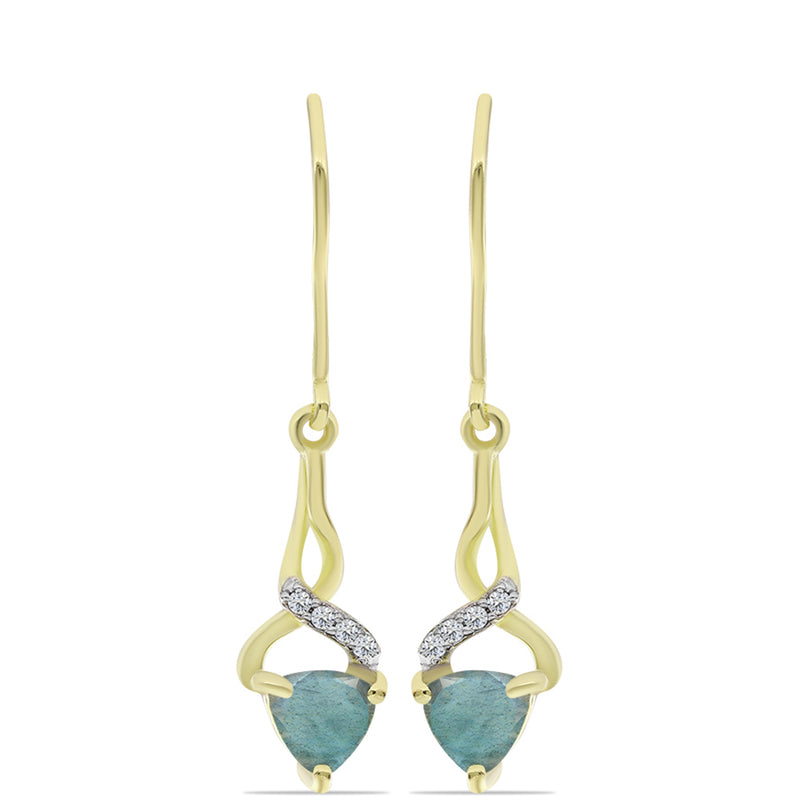 Pozlacené Stříbrné Náušnice s Labradoritem a Bílým Topazem