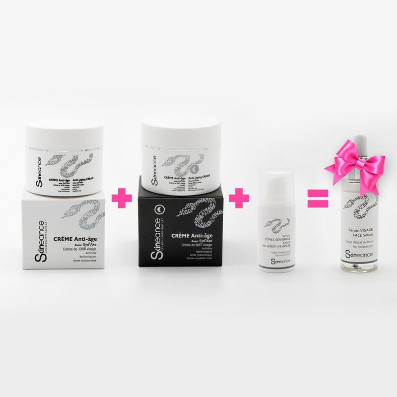 SYN-AKE Denní Krém, Noční Krém a Obličejové Sérum na Citlivá Místa + Skineance SYN-AKE Obličejové Sérum proti Stárnutí jako DÁREK