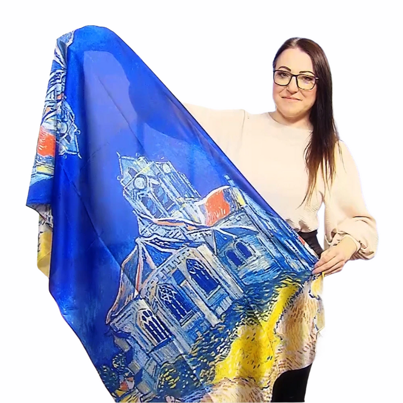 Hedvábná Šála-šátek, 70 cm x 180 cm, Van Gogh - The Church At Auvers