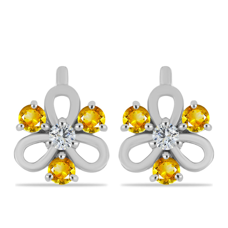 Stříbrné Náušnice s Uralským Citrínem a Bílým Topazem