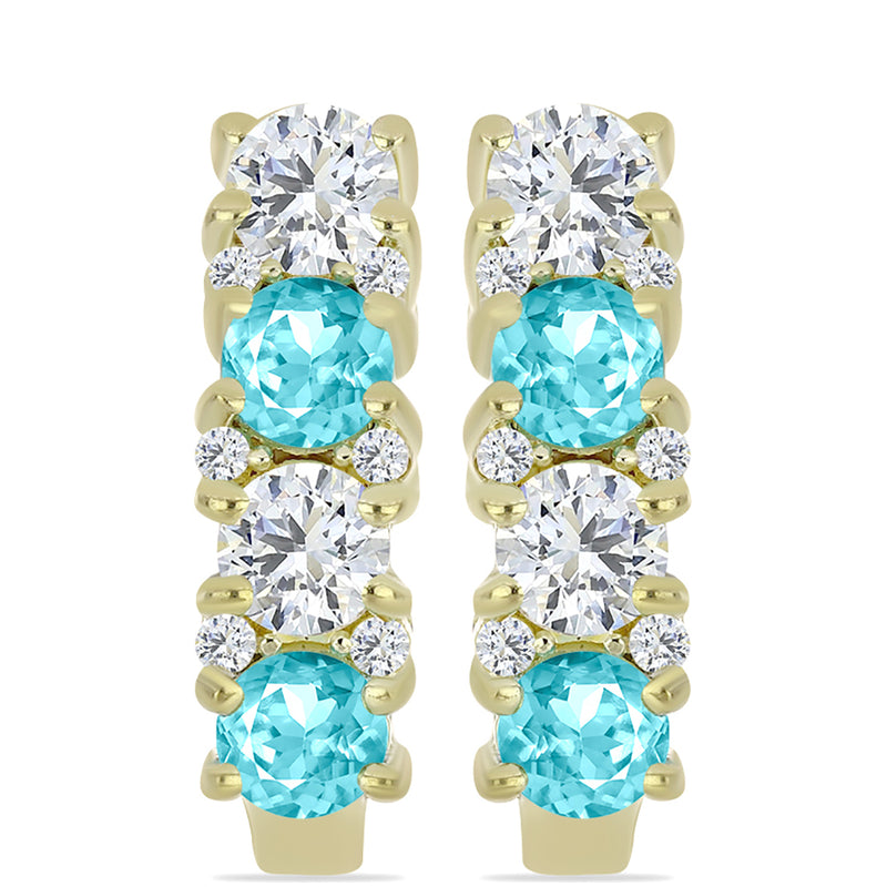 Pozlacené Stříbrné Náušnice s Paraiba Křemenem a Bílým Topazem