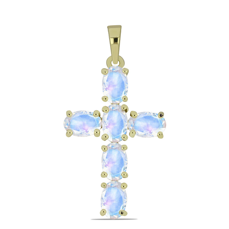 Kříž Pozlacený Stříbrný Přívěsek s Duhovým Měsíčním Kamenem