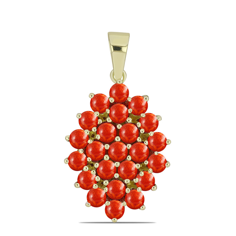 Pozlacený Stříbrný Přívěsek s Červeným Houbovým Korálem