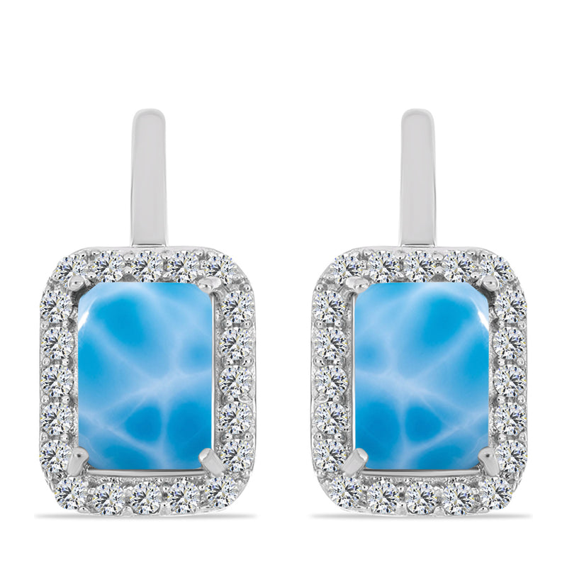 Stříbrné Náušnice s Barahonským Larimarem a Bílým Topazem