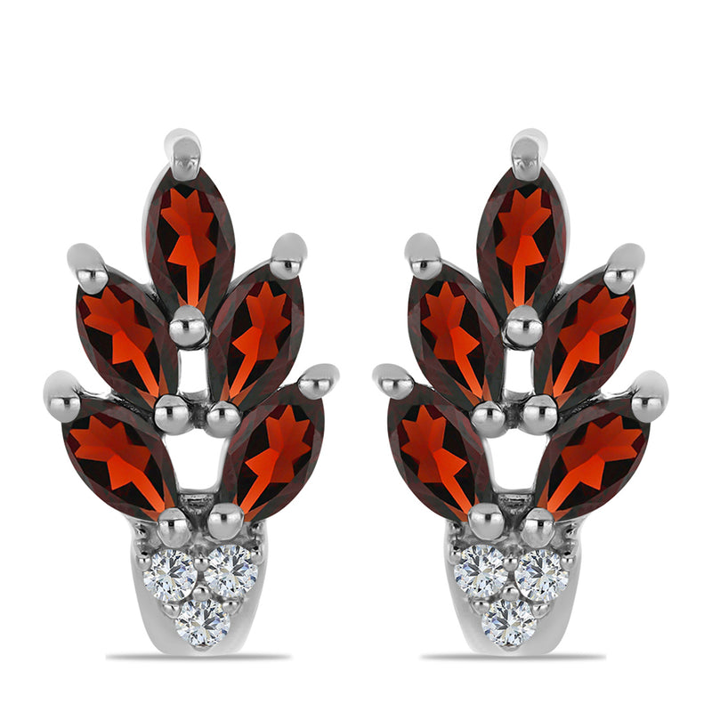 Stříbrné Náušnice s Bartonským Granátem a Bílým Topazem