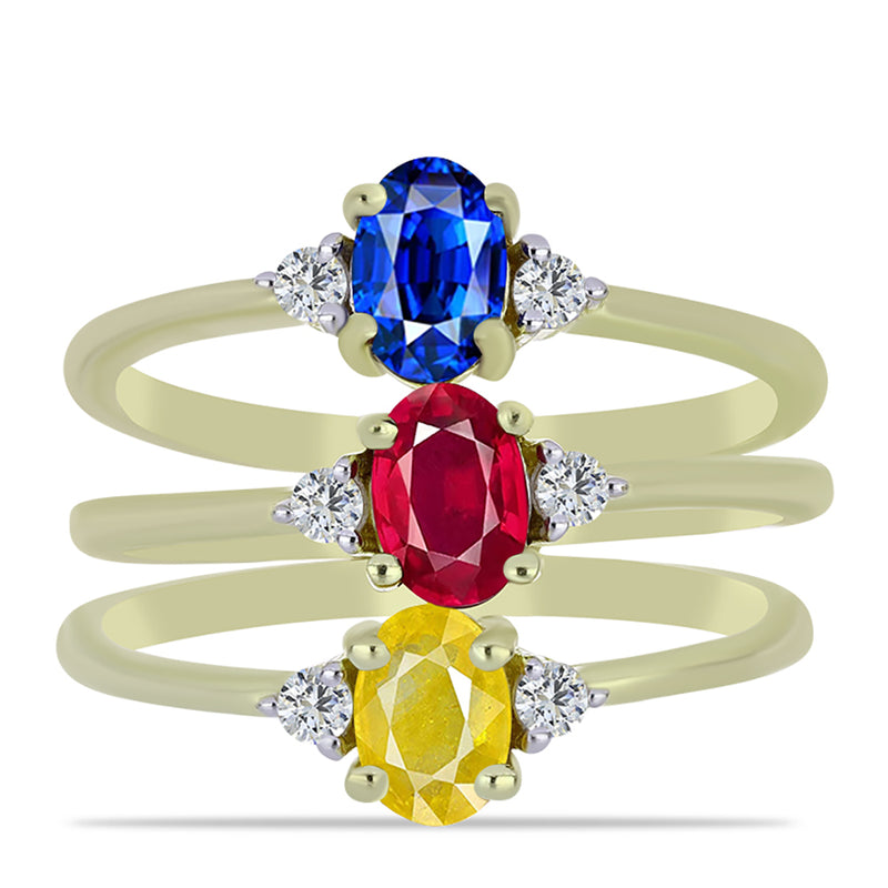 Pozlacená Stříbrná Sada s Madagaskarským Rubínem a Australským Modrým Safírem ( Prsten )