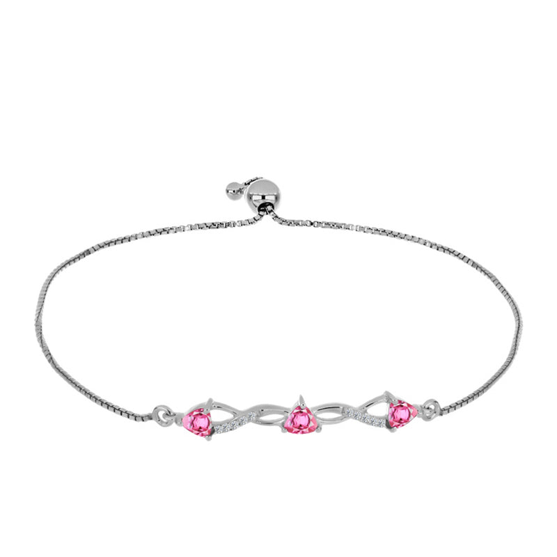 Stříbrný Náramek s Růžovým Turmalínem z Pelmadulla a Bílým Topazem