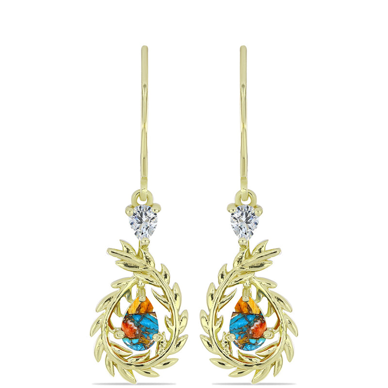 Pozlacené Stříbrné Náušnice s Ústřicovým Tyrkysem a Bílým Topazem