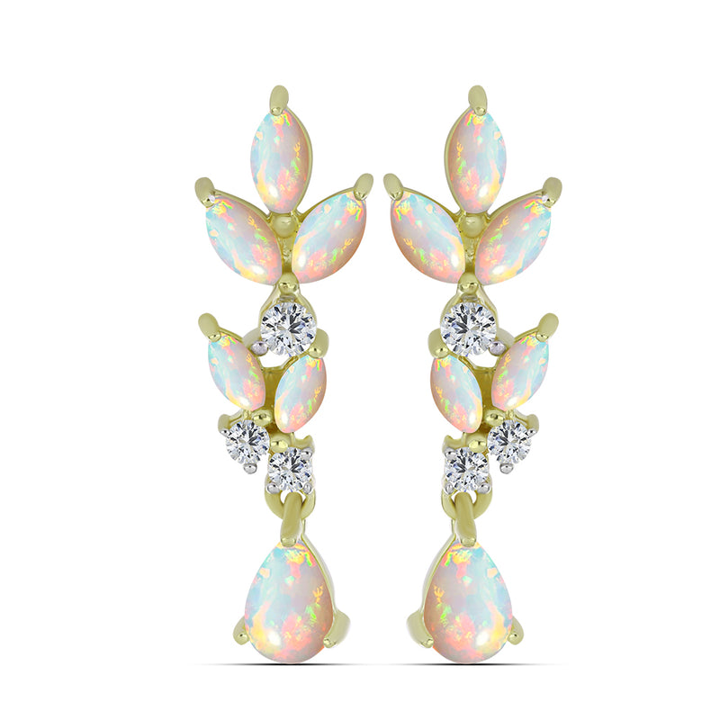 Pozlacené Stříbrné Náušnice s Etiopským Opálem z Lega Dembi a Bílým Topazem