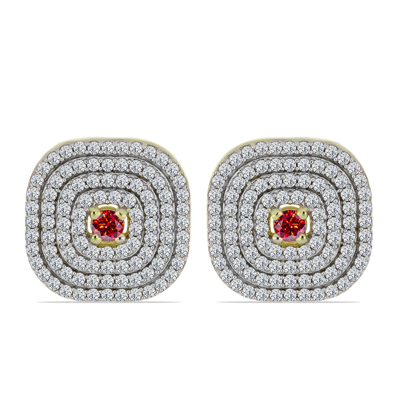 Pozlacené Stříbrné Náušnice s Majestátním červeným moissanitem a Bílým Topazem