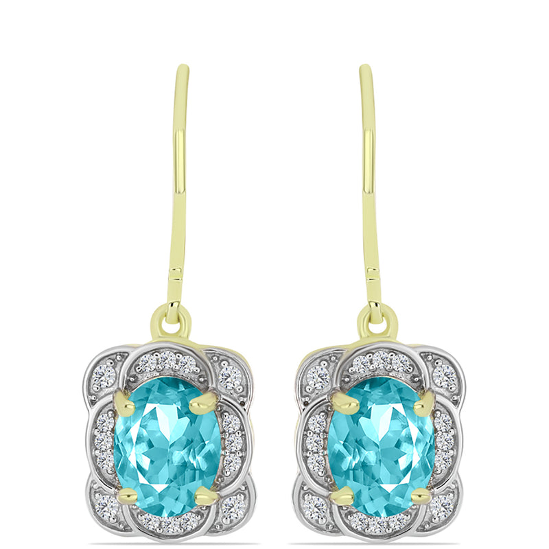 Pozlacené Stříbrné Náušnice s Paraiba Křemenem a Bílým Topazem
