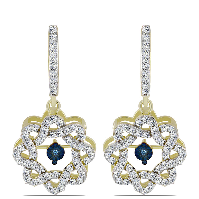 Pozlacené Stříbrné Náušnice s Modrým tančícím diamantem a Bílým Topazem