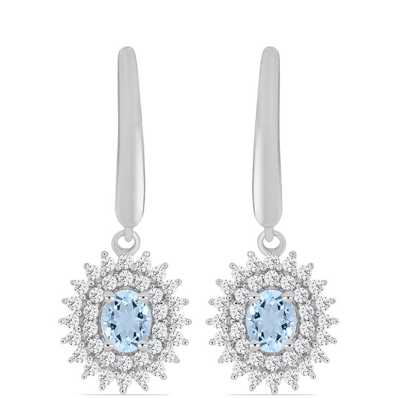 Stříbrné Náušnice s Akvamarínem z Embu County a Bílým Topazem