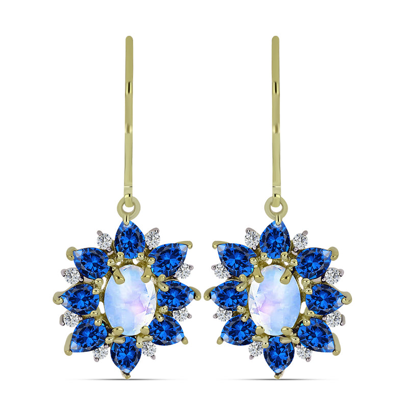 Pozlacené Stříbrné Náušnice s Duhovým Měsíčním Kamenem a Australským Modrým Safírem
