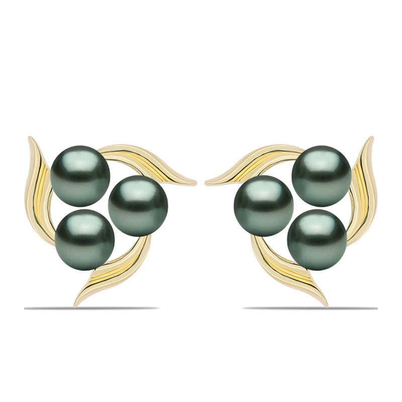 Pozlacené Stříbrné Náušnice se Sladkovodní perlou v podobě Tahitské zelené iluze