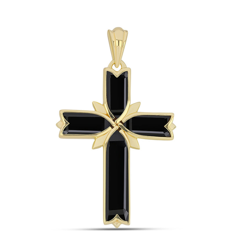 Kříž Pozlacený Stříbrný Přívěsek s Černým Onyxem