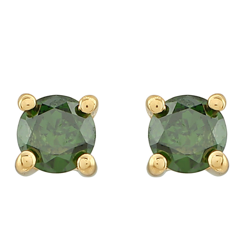 Pozlacené Stříbrné Náušnice se Zeleným Diamantem