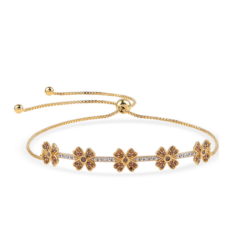 Pozlacený Stříbrný Náramek s Červeným Diamantem a Bílým Diamantem