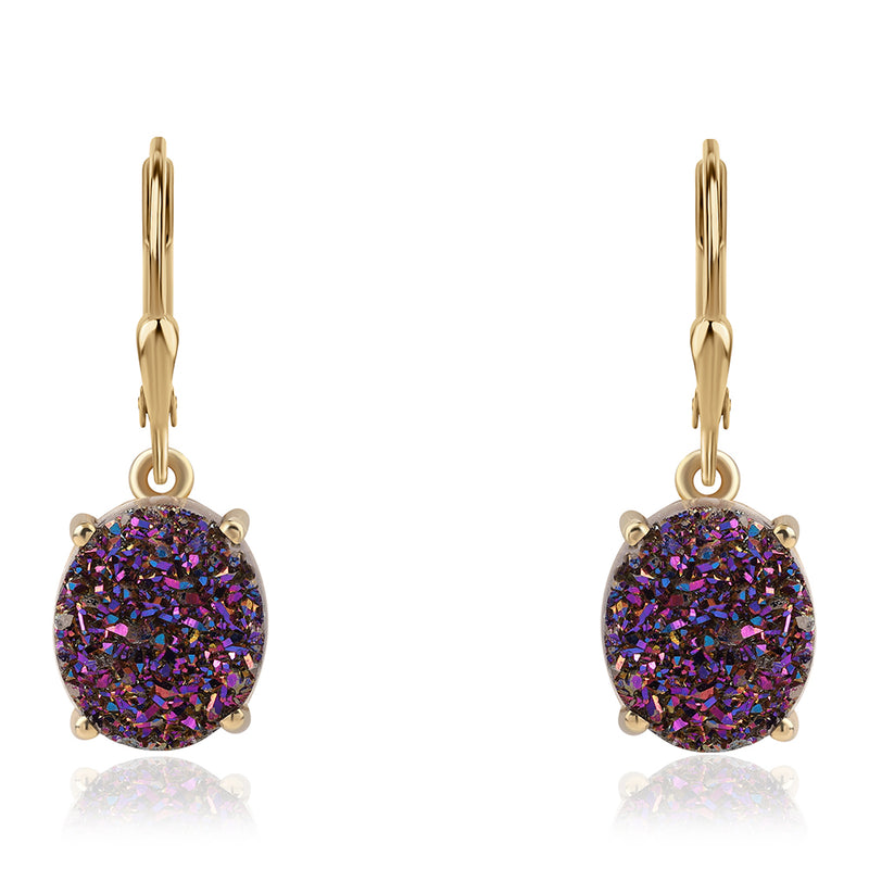 Pozlacené Stříbrné Náušnice s Fialovou Drusy