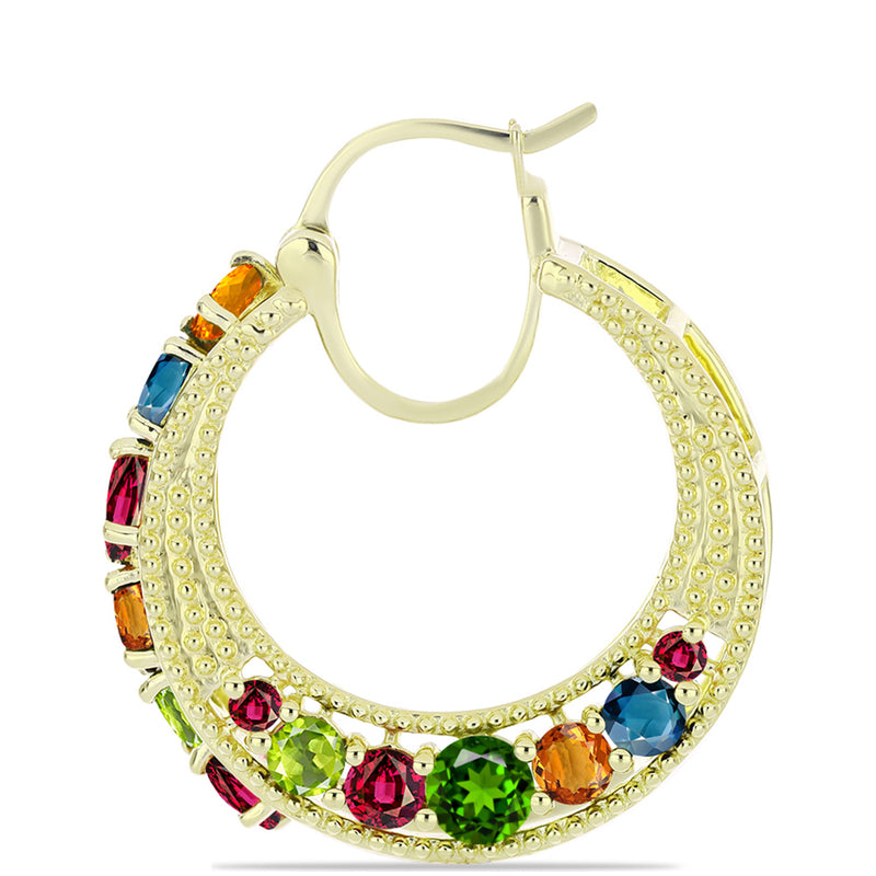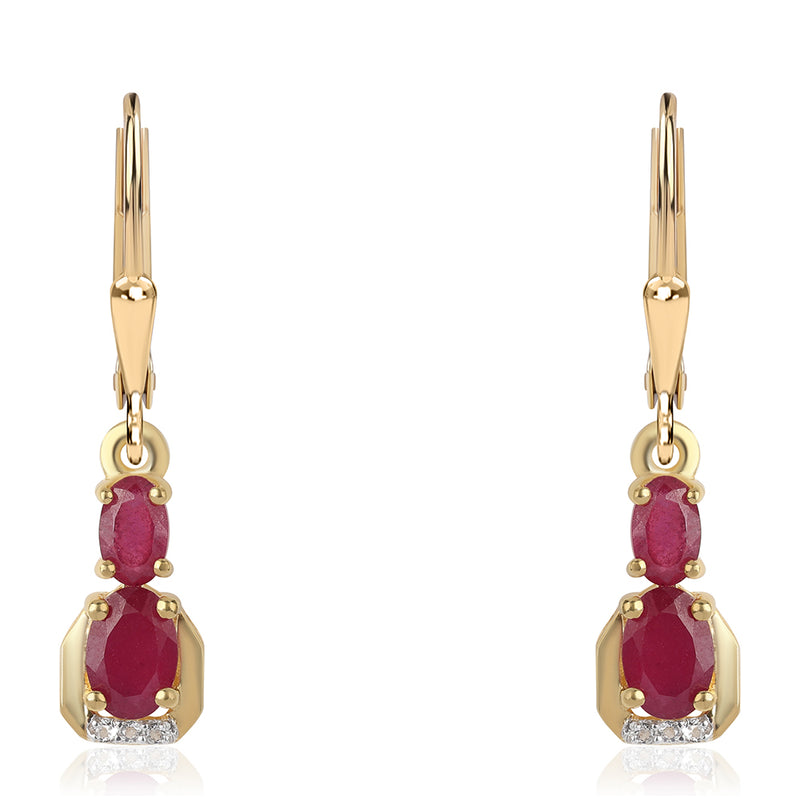Pozlacené Stříbrné Náušnice s Mozambickým Rubínem a Bílým Topazem