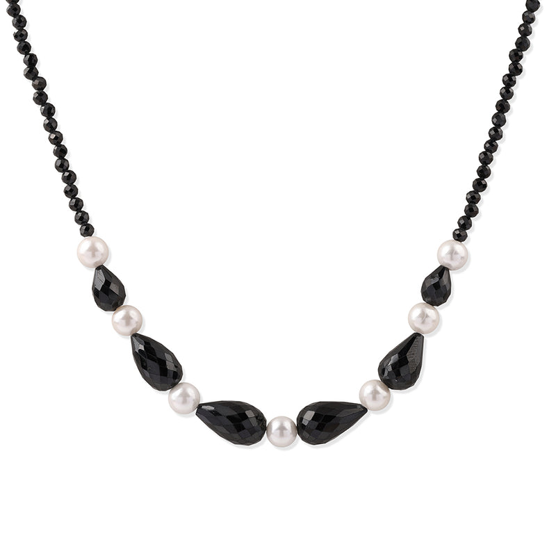 Pozlacený Stříbrný Náhrdelník s Černým spinelem a Bílou Sladkovodní Perlou