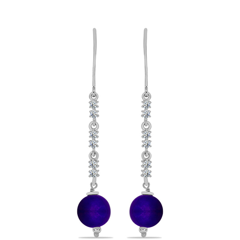 Stříbrné Náušnice s Purpurovým Jadeitem a Bílým Topazem