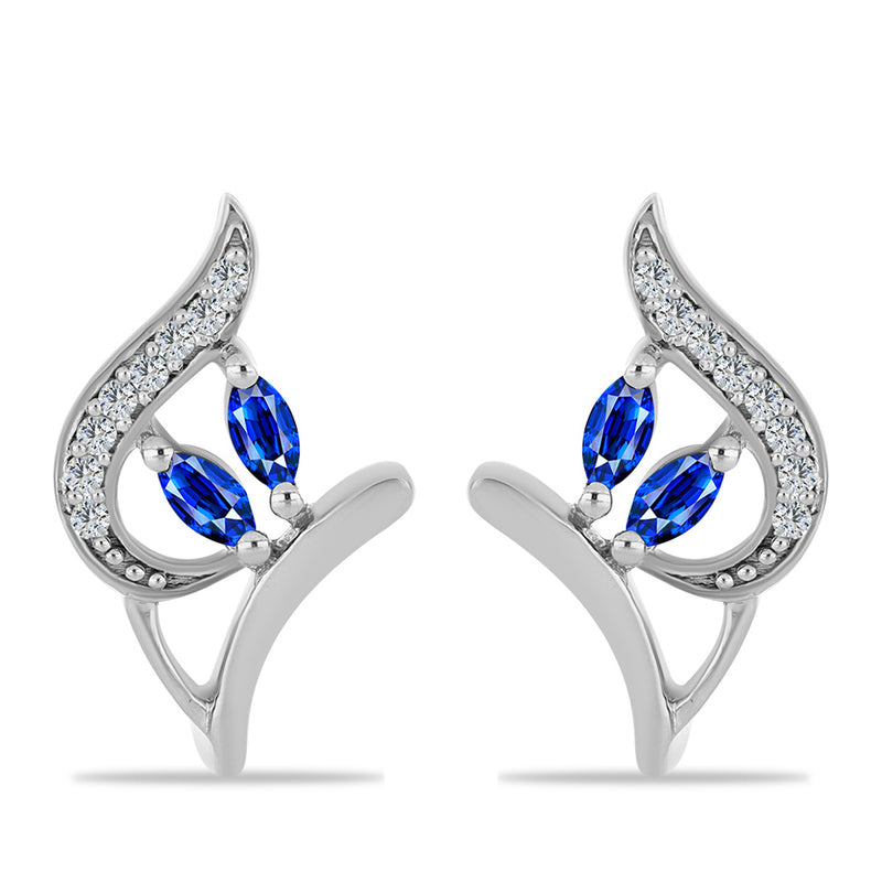 Stříbrné Náušnice s Australským Modrým Safírem a Bílým Topazem